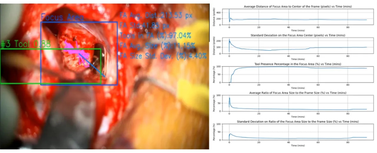 - The focus area size, while small relative to the total frame, remained consistent, even during complex phases of surgery.