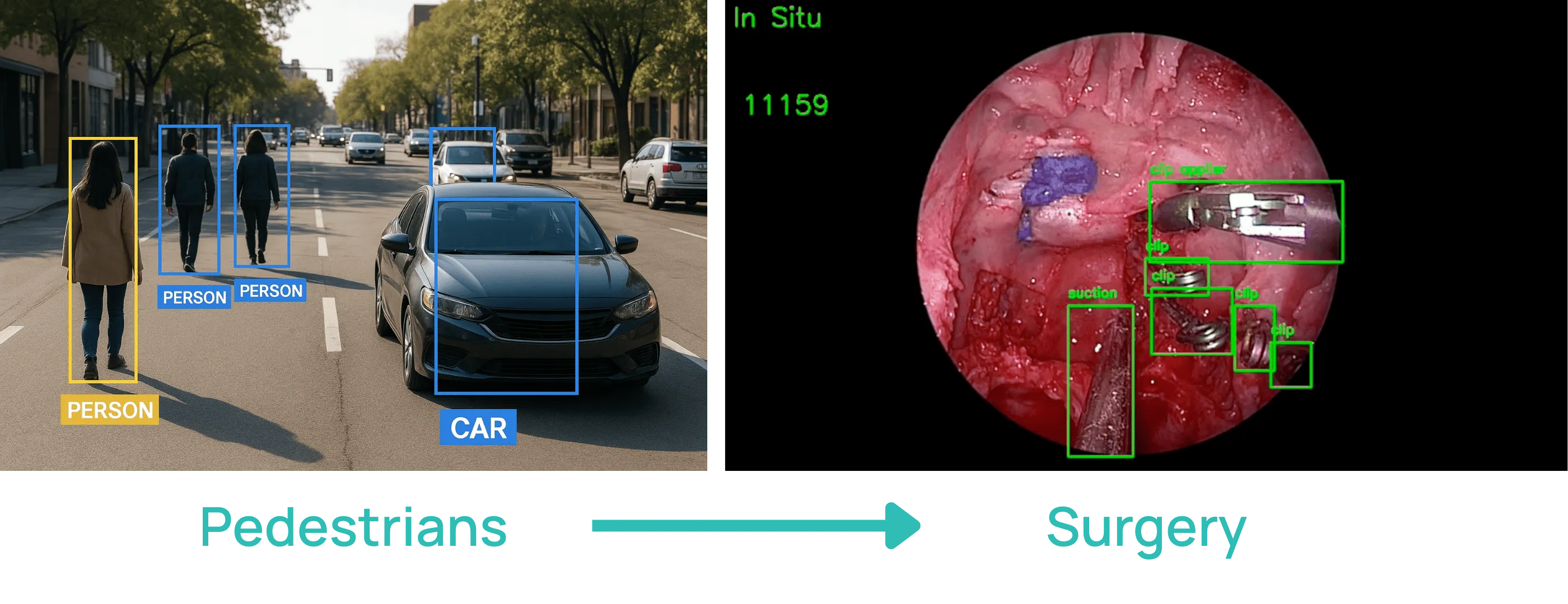 Most open-source ML models are trained on data from the outside world: streets, cars, trees, pedestrians. And considering they have never seen a surgical field before, and the visual intricacies of the human body are vastly different to a child losing their football in the street, it would be rather unreasonable to expect them to perform well. Besides, facing a raging pituitary adenoma must be quite the shock after all those hours of simply watching leaves blow in the wind, and the road rage unfold at the local intersection. So, the question stands: how do we build models that understand endoscopy, not traffic?