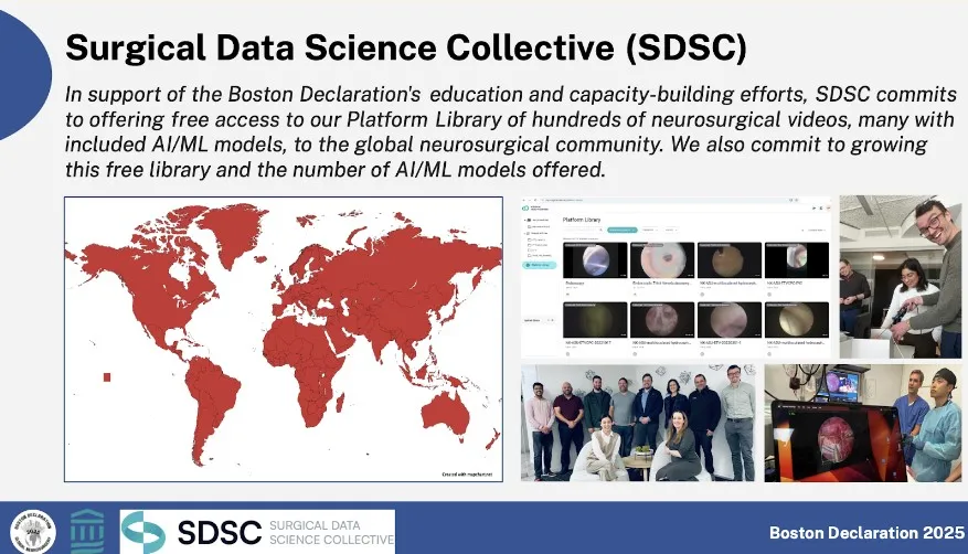 On April 24, Surgical Data Science Collective (SDSC) gathered with the leaders of the global neurosurgical community for the 2025 Boston Declaration, held at the Edward M. Kennedy Institute in Boston, MA. This prestigious event offered the opportunity for governmental agencies, academic and clinical institutions, professional societies, non-governmental organizations, industry, and patient advocacy groups around the world to pledge resource contributions as part of a unified mission to address Global Neurosurgery needs. The Boston Declaration reviews existing evidence, employs on-the-ground expert experience, and seeks broad inclusivity and transparency to formulate new global neurosurgery goals in underserved regions.